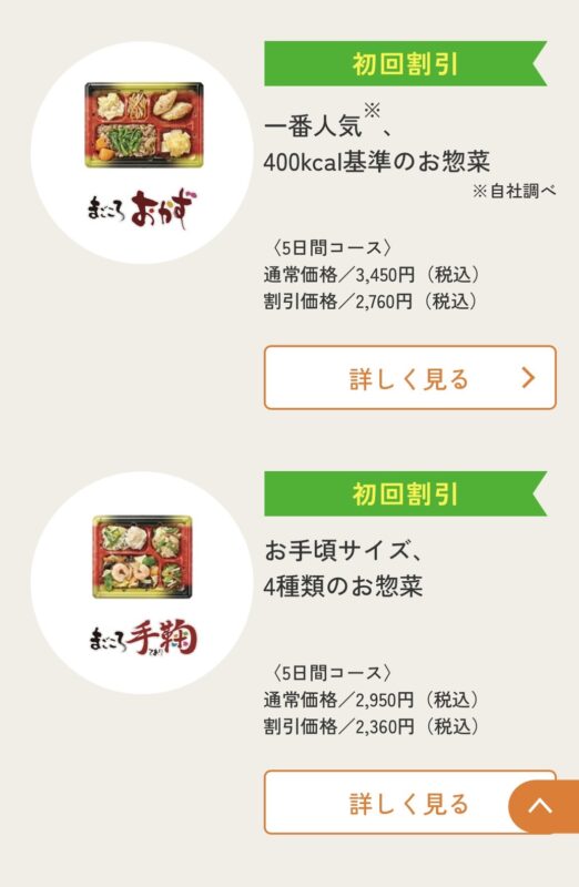 私にピッタリな量は「まごころおかず」か「まごころ御膳」です。