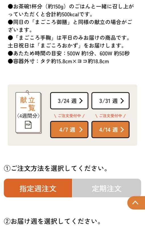 ・指定週注文:届けてもらいたい週だけ、選んで注文できます。